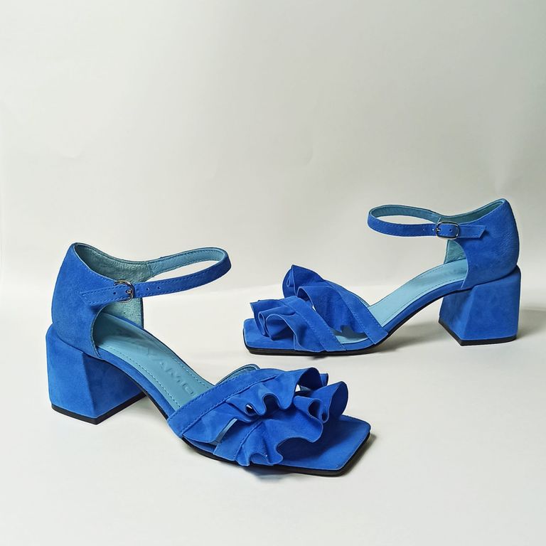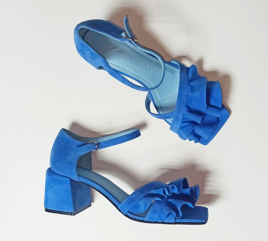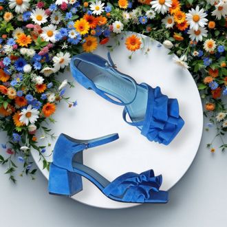 Яркие босоножки с роскошной двойной оборкой в оттенке неба — ваш модный ответ серым будням!