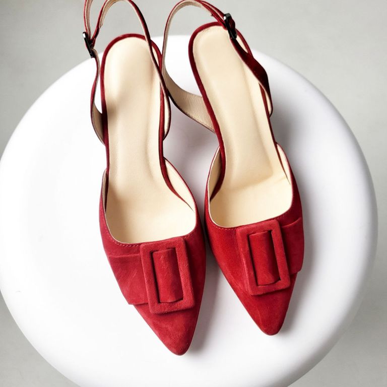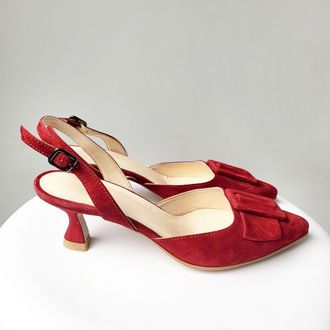 Модель выполнена в замше на каблуке 5см (доступна высота 7см и 9см)