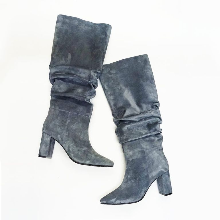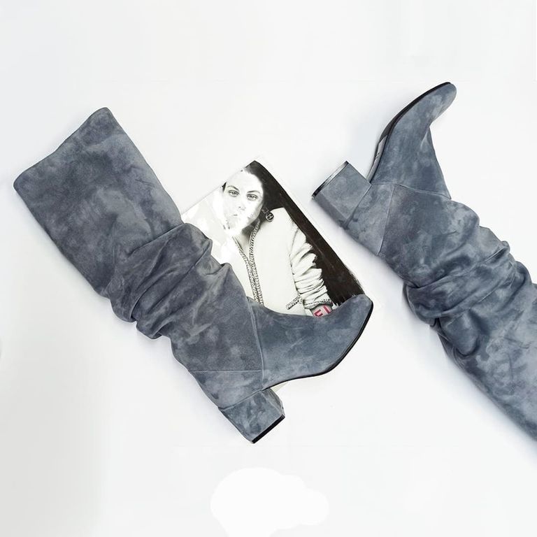 Модель сапожек выполнена на устойчивом каблуке 7см остромодной квадратной формы изнатуральной итальянской замши